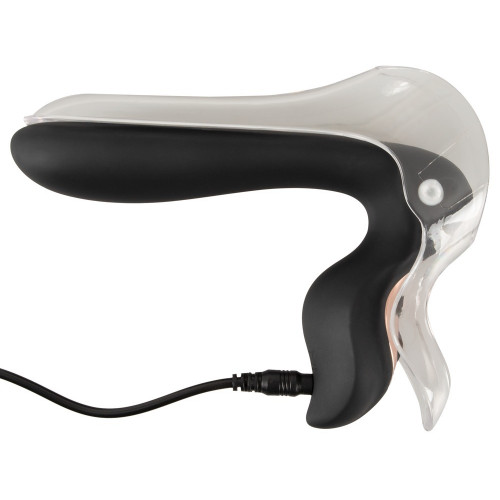 Виброрасширитель от Bad Kitty со встроенным светодиодом и вибрацией. Его можно легко ввести для вагинального и анального осмотра, и его можно удобно растянуть до 2 см. Верхнее лезвие прозрачное, чтобы обеспечить лучший обзор.