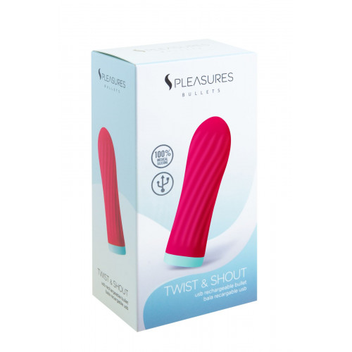 Вибропуля S Pleasures Bullets Twist & Shout Cerise, ярко-розовая, ребристая поверхность, 10 режимов