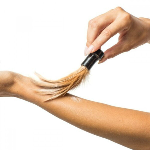 В комплекте есть удобная кисточка с мягкими, как облако, перьями, с помощью которой следует наносить средство на тело.