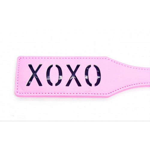Розовая шлепалка в виде лопатки, украшенная вырезной надписью OXOX.