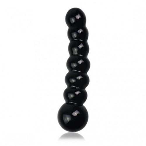 Стильний чорний фалоімітатор з міцного скла. Іграшка зігнутої форми у вигляді кульок для більш яскравих відчуттів. Скло відмінно тримає тепло або холод, якщо помістити виріб перед використанням в воду відповідної температури.