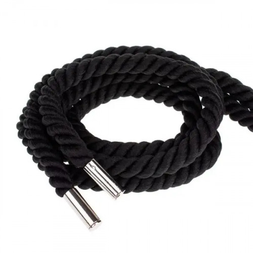 Міцна мотузка для бондажу і фіксації. Виконана в чорному кольорі з високоякісного м'якого матеріалу, поверхня гладка, шовковиста та приємна на дотик. Призначена для експериментів у зв'язуванні та в'язанні вузлів при рольових іграх і БДСМ розвагах. Аксесуар відмінно підійде як для початківців, так і для досвідчених користувачів. Довжина - 5 м.