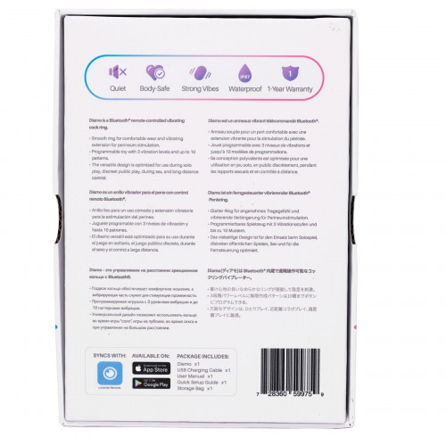 Lovense Diamo Cock Ring складається з гнучкого, але щільного силіконового кільця та потужного вібромотора. Завдяки щільній фіксації, кільце передає вібрації по всьому периметру пеніса, що сприяє стійкій ерекції, підсиленому збудженню та вибуховим оргазмам. Надійна посадка робить його зручним для тривалого носіння, а м'яка текстура забезпечує максимальний комфорт.