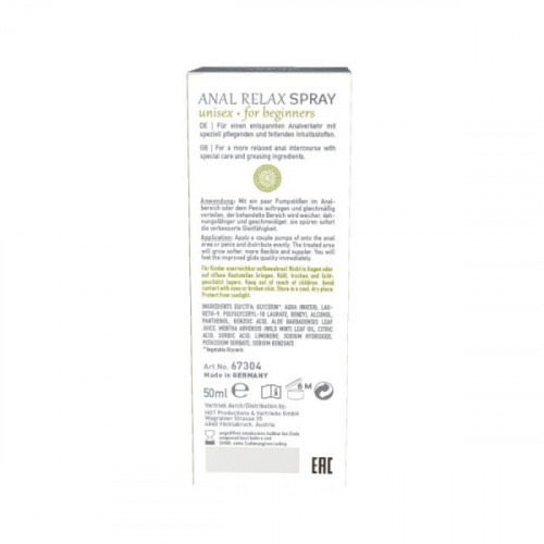 Доглядає спрей для анальної зони. Унікальні інгредієнти пом'якшують та розслаблюють м'язи. Перешкоджають появи мікротріщин. Спеціальний склад дозволяє безболісне проникнення навіть для початківців. Наноситися на зовнішню інтимну зону.