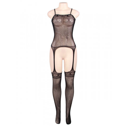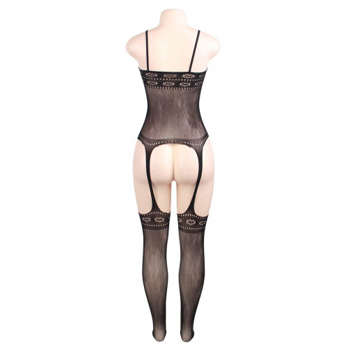 Бодистокинг в сеточку с имитацией чулков Star Night черный XS-M