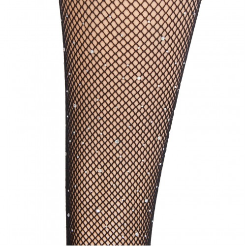 Чулки черные в сеточку со стразами Star Night на силиконовой ленте, XS/M