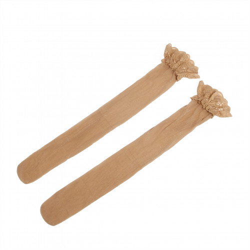 Кружевное оформление на верхнем крае чулок добавляет изысканности и женственности, а легкий блеск придает им роскошный вид. Особенностью этих чулок является двойная силиконовая полоска на внутренней стороне верхнего края, которая предотвращает сползание и обеспечивает надежную фиксацию даже при активном носке. Они идеально подходят для тех, кто хочет добавить немного роскоши в свой образ, оставаясь при этом комфортными и практичными для любой ситуации.