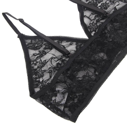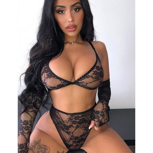 Комплект белья с перчатками Star Night кружевной, черный, XS-S
