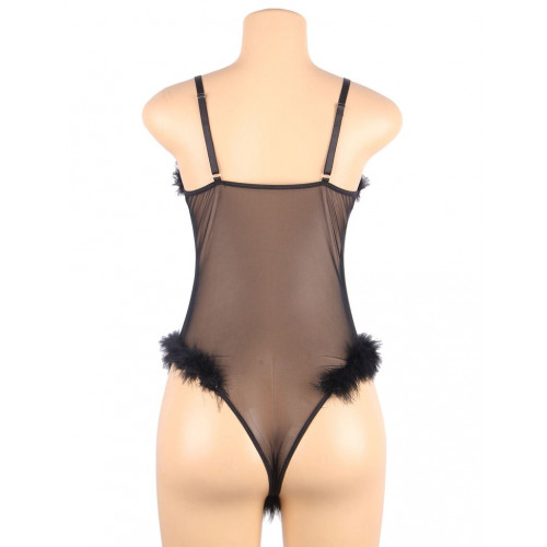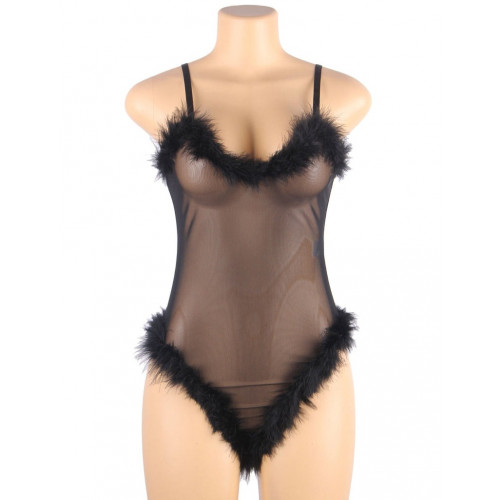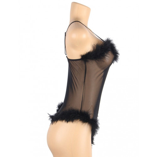 Комплект с меховой окантовкой Star Night пеньюар с длинными рукавами и боди, черный