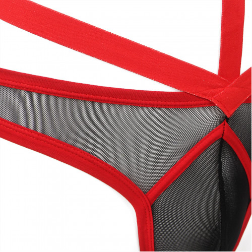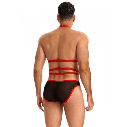 Мужские трусы с портупеей и чокером Star Night красный-черный, L