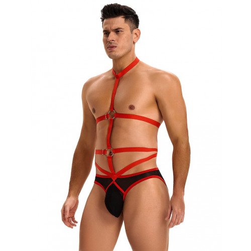 Мужские трусы с портупеей и чокером Star Night красный-черный, S