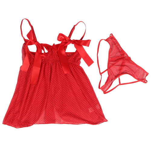Пеньюар в горошек с бантами на груди Star Night и стринги в комплекте, красный, XS/S