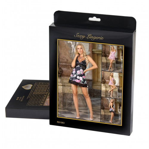 Платье черное с цветочным принтом Star Night с трусиками в комплекте, М