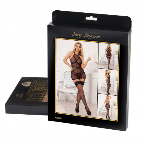 Платье полупрозрачное с держателями для чулков Star Night и трусиками, черное, M