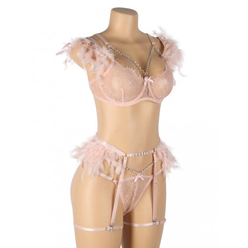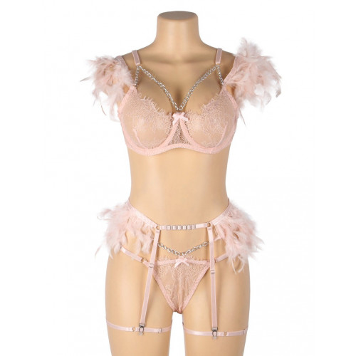 Сексуальный комплект белья Star Night с перьями и цепочками, персиковый (без коробки)