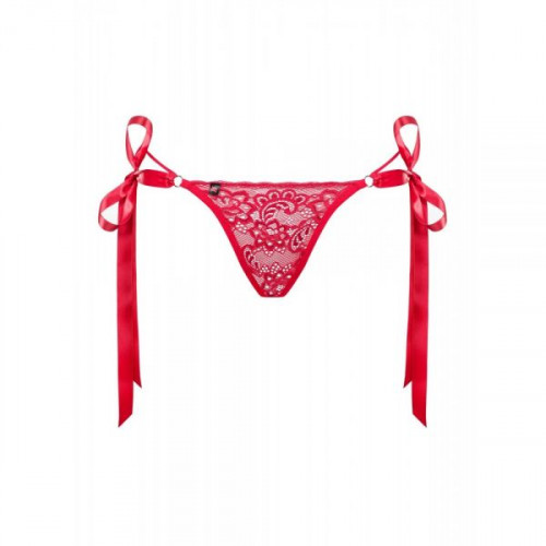 Червоні стринги допоможуть вам створити спокусливий образ. Атласна шнурівка надає особливого шарма. Завдяки кроєм did2fit у трусиків ідеальна посадка. Бретельки над стегнами підкреслюють сексуальні вигини. Тканина приємна та еластична.