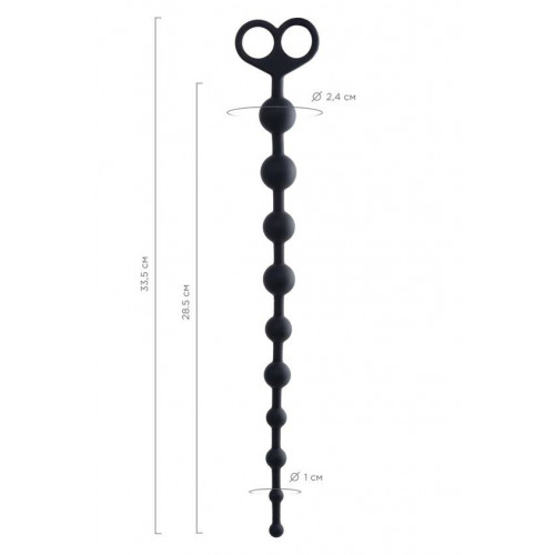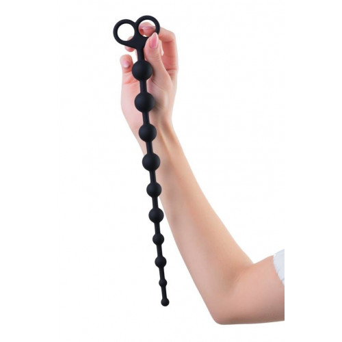 Анальний стимулятор у вигляді ланцюжка з 10-ти гладких кульок, що збільшуються у діаметрі ближче до основи. Аксесуар створений у чорному кольорі з пружного матеріалу високої якості. В основі іграшки розміщене зручне кільце для безпечного користування та регулювання рівня проникнення.