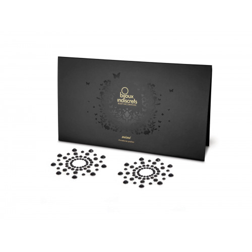 Bijoux indiscrets mimi - грайливе та дуже незвичайне прикраса для груди зробить її іще більш сексуальної та звабливого. Композиція з стразів являє собою парні аксесуари, складені з кристалів чорного кольори. Їх слід наклеїти таким чином, щоб сосок виявився в центрі кола. Кристали легко кріпляться з допомогою самоклеїться основи, що робить їх неймовірно зручними в використанні. Прикраси призначені для одноразового використання, однак якщо користуватися ними акуратно, багаторазове застосування стає можливим. Просто нанесіть на основу крапельку клею для вій тільки для зовнішнього використання! ) перед тим, як прикріпіть прикраси до шкірі.