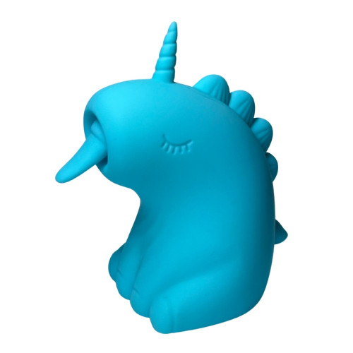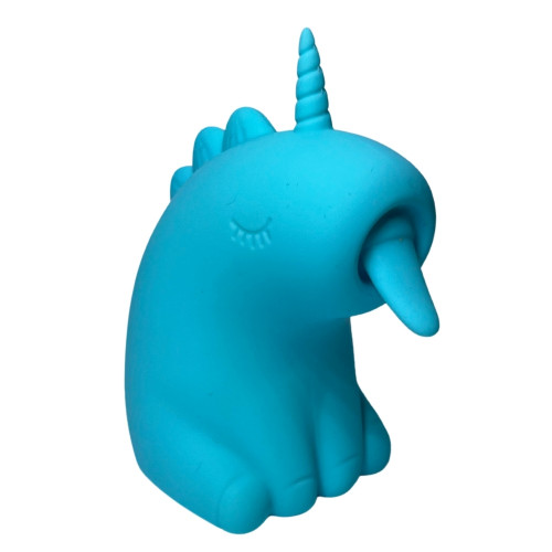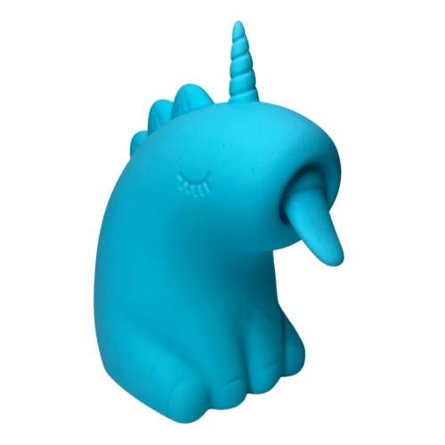 Стимулятор клитора с длинным вращающимся язычком UNIVIBE Единорог, 10 режимов, голубой