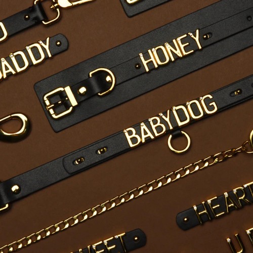 Эксклюзивная коллекция "Your Name, My Love" от UPKO включает чокеры, брелоки и наручники с уникальным дизайном из позолоченных букв.