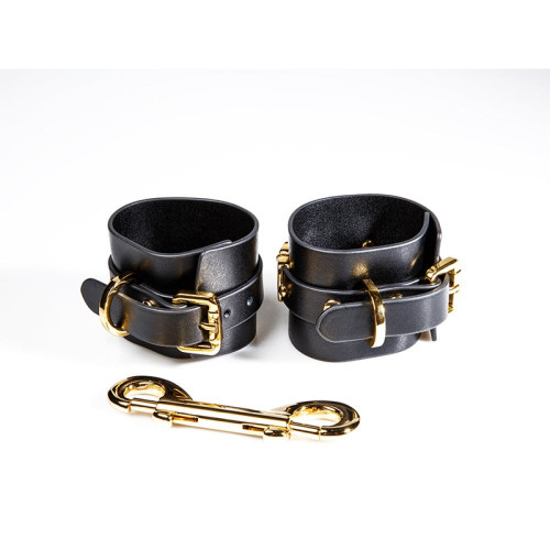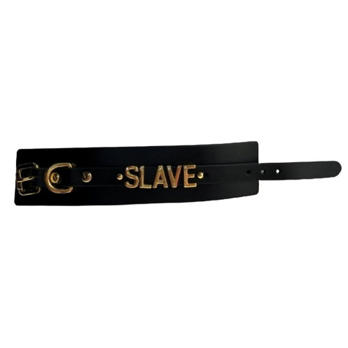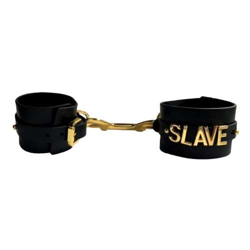 Наручники с надписью Slave от UPKO из итальянской кожи, черные с золотой фурнитурой