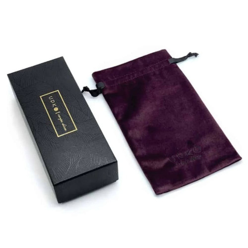 Помимо этого, фурнитура изделий покрыта золотом в 24К, что определенно добавляет яркий контраст и оставляет неизгладимое впечатление. И в довершении товары бережно упаковываются в элегантную черную коробку и бархатный чехол.