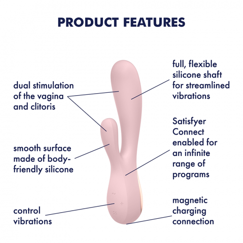 Подвійна стимуляція з Satisfyer Mono Flex Satisfyer Mono Flex створений для одночасної стимуляції клітора та точки G за допомогою чуттєвих вібрацій, які також можна контролювати через додаток! Цей кролик-вібратор виготовлений з високоякісного, гнучкого силікону, який плавно адаптується до ваших контурів і передає інтенсивні вібрації до гарячих точок. Вібрації можна інтуїтивно контролювати через панель управління або безкоштовний додаток Satisfyer Connect. Ви можете керувати Mono Flex віддалено через додаток, створювати нові програми вібрацій або зв’язувати вібратор з вашим улюбленим плейлистом на Spotify. Можливості безмежні!