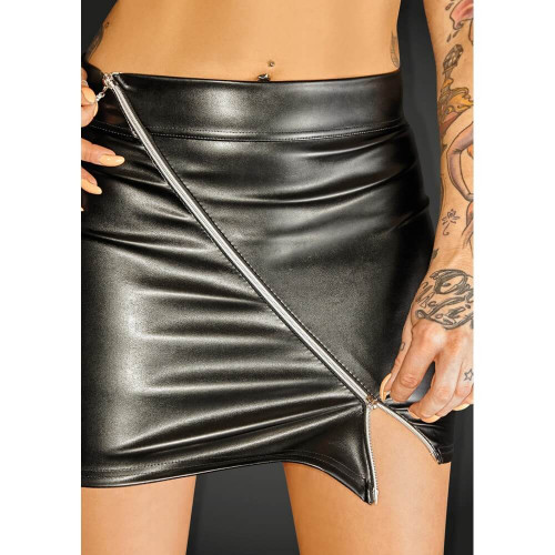 Спідниця сексуальна Коротка з вінілу з блискавкою навскоси, чорна, Noir Handmade, розмір S