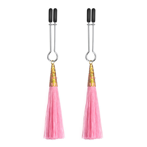 Красиві затискачі для сосків з підвісками у вигляді китиць рожевого кольору. Сила стиснення регулюється за допомогою повзунків на затискачах. На кінцях розташовані м'які накладки для безпечного використання. Використовуються як аксесуар БДСМ.