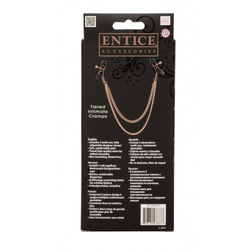 Будьте готовы разогреть ночь. Наши захватывающие и красивые зажимы для интимной гигиены Entice™ - это дизайнерские украшения в чувственном стиле. Этот набор из 2 многофункциональных дизайнерских зажимов оснащен высококачественной блестящей многоуровневой цепочкой для дополнительной привлекательности. Они полностью регулируются легким поворотом винта и подчеркнуты мягкими, удобными подушечками.
