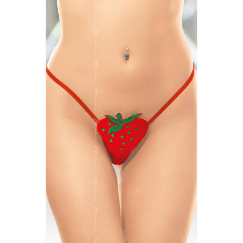 Чарівні трусики-стринги з високоякісного непрозорого матеріалу, виконані в червоному кольорі. Незвичайним декором цих трусиків є вставка у формі полунички.