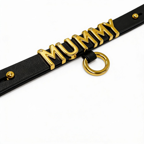 Чокер с надписью MOMMY от UPKO из итальянской кожи, черный с золотой фурнитурой