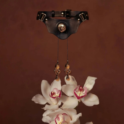 Ошейник черный из кожи UPKO Mystic Bond Collection с зажимами для сосков