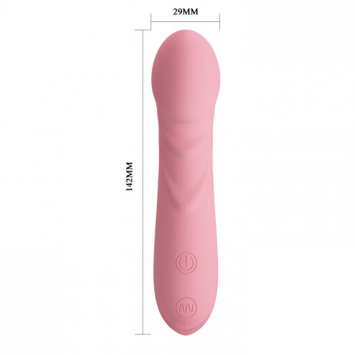 Стильный вибратор в нежно-розовом цвете. Изготовлен из бархатистого силикона, безопасного для здоровья. Обладает авираженной гладкой головкой и релефной поверхностью для непередаваемое ощущений. 30 вариантами вибраций легко управлять в основании кнопками. Длина - 14,2 см, диаметр - 2,9 см.