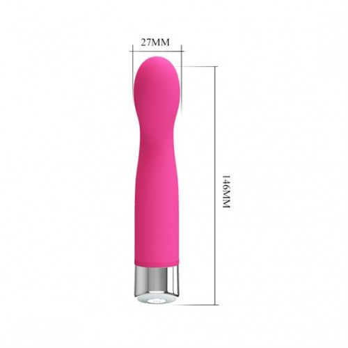 Стильный вибратор в розовом цвете. Создан из высококачественного силиконового материала, не вызывает аллергии. Обладает эргономичным слегка изогнутой формой для стимуляции точки "G". Оснащен 12 режимами мощной вибрации, которые регулируются кнопкой на корпусе. Длина - 14,6 см, диаметр - 2,7 см.