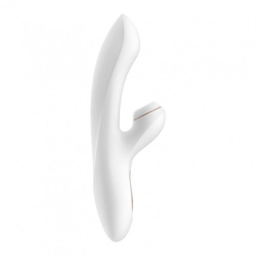 Стильный вибратор в белом цвете из гипоаллергенного силикона высокого качества. Имеет слегка загнутый ствол, который обеспечивает максимально эффективную стимуляцию точки "G", а дополнительный отросток предназначен для вакуумного массажа клитора. Вибратор имеет 21 режим работы, которые переключаются при помощи встроенного контроллера. Длина - 22,5 см, диаметр - 2,8-3,5 см.