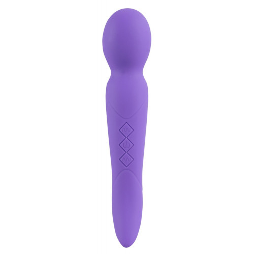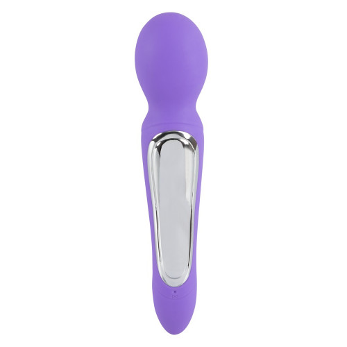 Многофункциональный вибромассажер фиолетового цвета, имеет эксклюзивный дизайн и мощную вибрацию. Главной особенностью этого вибратора являются два мотора, блягодаря чему он может использоваться с двух сторон. С одной стороны у него толстая шаровая головка, с другой стороны узкий заостренный носик. Каждая сторона имеет 10 режимов вибрации, которые регулируются отдельно. Перезаряжаеться с помощью USB-кабеля для зарядки. Общая длина - 22 см, диаметр - 2,8-4,4 см.