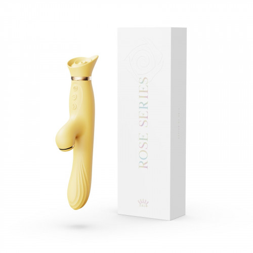 Вибратор с подогревом и вакуумной стимуляцией клитора Zalo Rose Vibrator Strawberry Yellow