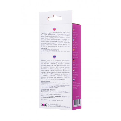 Виброяйцо A-Toys - это уникальная секс-игрушка, которая добавит интимным играм нотку пикантности. Оно отличается компактным размером, гладкой бесшовной поверхностью, качеством материалов, таких как медицинский силикон и ABS пластик и удобным управлением с помощью проводного пульта. Его универсальность позволяет использовать игрушку не только для клиторальной и вагинальной стимуляций, но и для стимуляции любой из эрогенных зон партнера. А 20 режимов с мощными импульсами вибрации будоражат при первом прикосновении и помогают подвести партнера к возбуждающим кульминации.