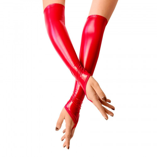 Виниловые миттинки Art of Sex - Lora длинные, размер S, цвет красный
