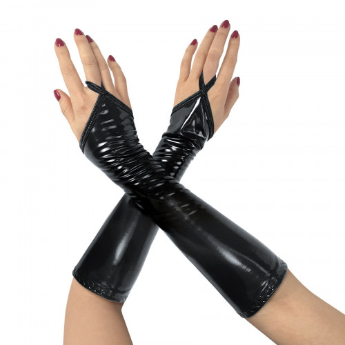 Короткие виниловые митенки Art of Sex - Lora – отличный способ освежить свой образ, дополнив его оригинальными аксессуарами. Митенки легко одевать и снимать, они не сковывают движения. Митенки из винила придают рукам магнетическую привлекательность и грациозность.