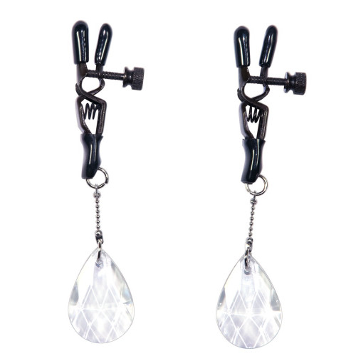 Элегантные зажимы для сосков с прозрачными подвесками в виде ярких кристаллов. Сила сжатия регулируется с помощью специальных исключительно. На концах имеются мягкие накладки для безопасного использования и защиты от повреждения сосков. Используются как аксессуар БДСМ. Полная длина каждого аксессуара - 11,5 см, длина зажима - 6 см.