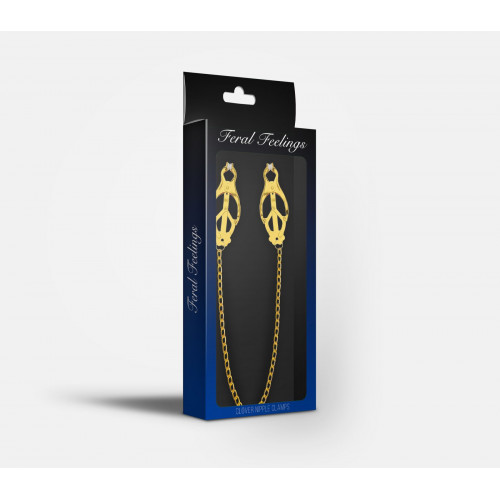 Зажимы для сосков с цепочкой Feral Feelings – Clover nipple clamps, золото/белый