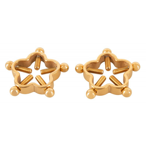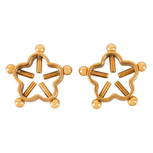 Эти два чрезвычайно легких зажима для сосков Nipple Jewellery Golden Flower от Bad Kitty зажимают соски и могут регулироваться с помощью 5 винтов. Ощущение варьируется от нежного до чрезвычайно возбуждающего. Простой, но стильный цветочный дизайн этих золотистых металлических зажимов чрезвычайно элегантен и делает их похожими на настоящий пирсинг.
